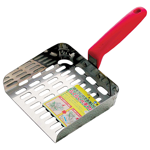 片手でふるうので手軽で簡単に使用できます。 抜いた草をすくい取ってそのままふるえます。 プランター等の土の入れ替え時のふるいにも便利です。 グリップは手にフィットし力が入りやすく、疲れにくい形状です。 |