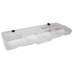 ●色:クリア。 ●内寸:620(620/460/310/160mmに使い分け可能)×120×深さ45mm。 ●可変式仕切板3枚付。 |