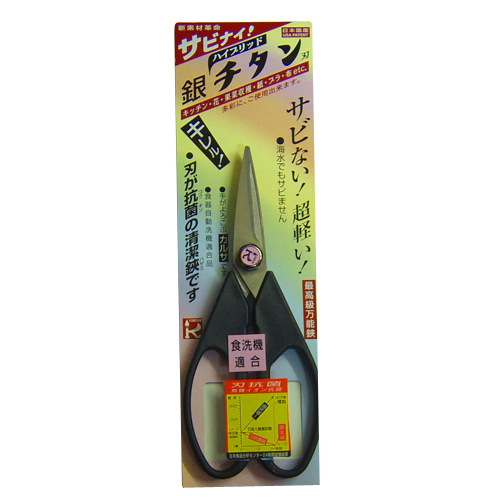 | 機能・特徴 | 刃は、強力な抗菌性の銀チタン刃、支店部は新発明の抗菌セラミックリング、把手は無機抗菌樹脂を使用して全身抗菌でサビない鋏です。