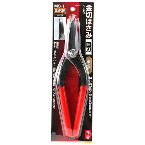 ●全長:約210mm。 ●切断能力(目安):(トタン板・ガルバリウム鋼板・銅板・真鍮板)0.3mmまで。 ●切断能力(目安):(ステンレス板)0.2mmまで・(アルミ板)0.5mmまで。 |
