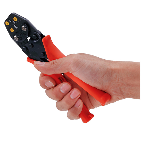 よく使われる接続端子サイズを最適に配列しています。 本体に内蔵された成形確認機構によりえりもとスッキリです。 |