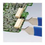 1.5mmピッチの超高密度に実装されたストレート型・ライトアングル型基板コネクターも確実に挿抜作業ができる精密先端設計です。 |
