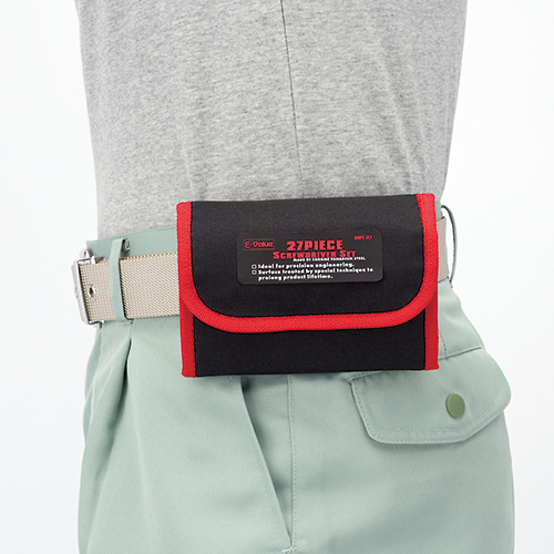 持ち運びに便利な収納ポーチです。 ビットはドライバードリルでも使用可能です。 ポーチはベルト通しループ付です。 |