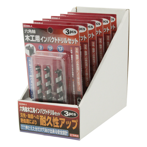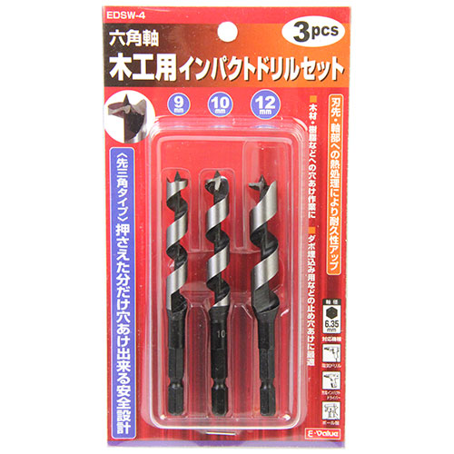 ●6.35mm六角軸。 ●対応機種:電気ドリル・充電インパクト・ボール盤。 ●3本組。 |