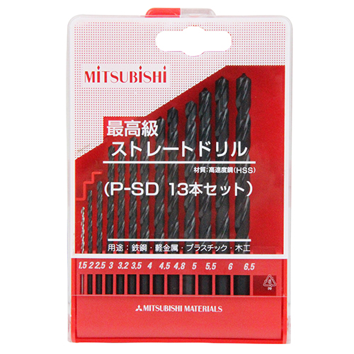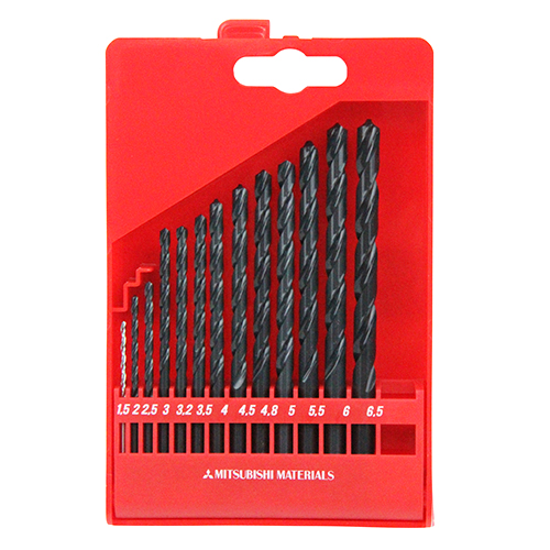 | 仕様 | ●刃先サイズ:1.5・2.0・2.5・3.0・3.2・3.5・4.0・4.5・4.8・5.0・5.5・6.0・6.5mm。 ●丸軸シャンク。 ●13本組。 ●推奨対応材料:鉄鋼・アルミ・木材・樹脂。 ●対応機械:電動ドリル・ボール盤。 |