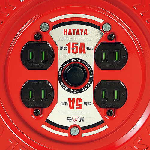 ●サイズ:(寸法)W230×H324×D181mm・(質量)6.6kg。 ●電線長:30m。 ●電線仕様:VCT2.0mm2×2心。 ●製品定格:125V・5A。 ●コンセント仕様:(定格)2P・15A.・125V・(個数)4。 ●その他装備:コンセント防塵シャッター。 |