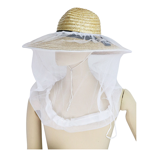 首周り絞り付きで自由に調節できます。 麦わら・その他の帽子にかぶせてご使用ください。 白色の為、蜂が寄り付きにくくなっております。 |