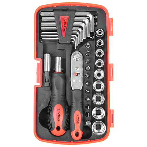 ●セット内容:2wayラチェットドライバー・ドライバーハンドル。 ●セット内容:精密ドライバー(ナイマナス(-1.2・-1.8)・プラス(+00・+000))。 ●セット内容:六角棒レンチ(1.5・2・2.5・3・4・5・5.5・6mm)。 ●セット内容:6.35mm差込角ソケット(5.5・6・7・8・10・11・12・13・14mm)。 ●セット内容:25mmビット(プラス(0・1・2・3)・マイナス(4・6)・トルクス(T10・T15・T20・T30))。 ●セット内容:ソケットアダプター・ビットホルダー・プラスチックケース。 |