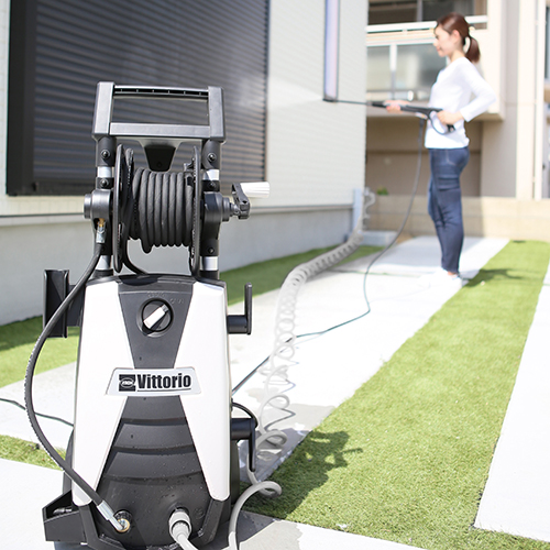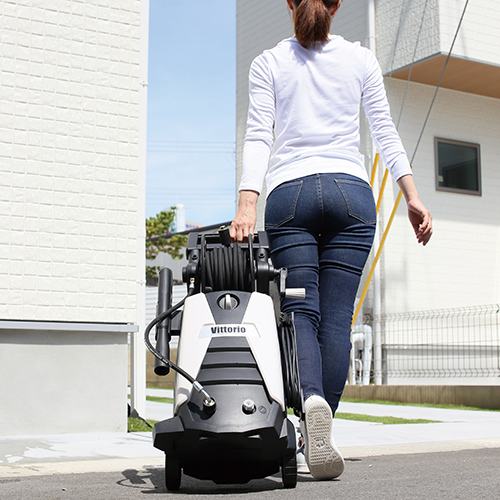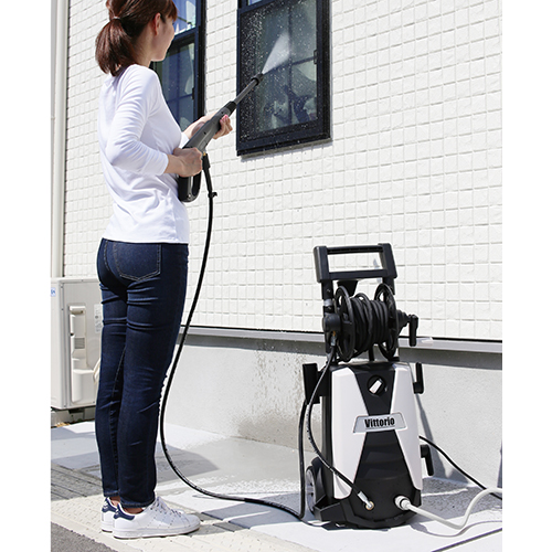 標準でバリオジェットノズルと、サイクロンノズルが付属しています。 業務品質の高圧ゴムホースを採用しています。 10mの高圧ゴムホースと10mの延長高圧ゴムホースを標準付属しています。 自吸機能、洗剤ボトル付きです。 |