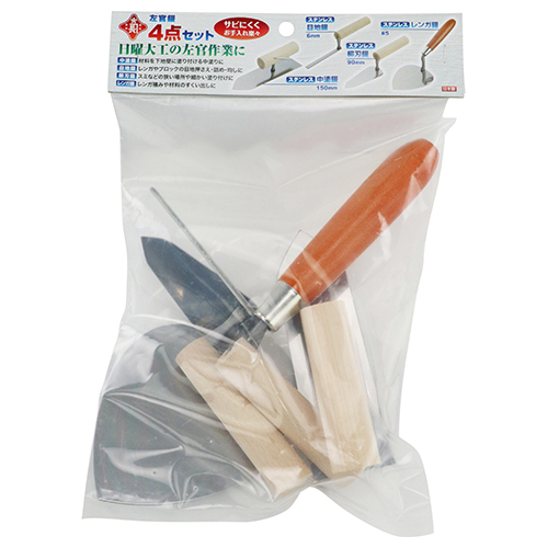 | 機能・特徴 | 日曜大工での左官作業やちょっとした補修工事などに適した左官鏝をセットにしました。