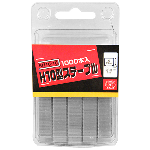 ●サイズ:足幅10mm・足長10mm・素材幅1.2mm。 ●表面処理:亜鉛メッキ。 ●主な適合機種:電動タッカーSET-901・パワフルハンドタッカーPT-1。 |