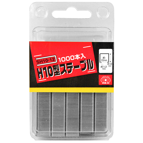 ●サイズ:足幅10mm・足長12mm・素材幅1.2mm。 ●表面処理:亜鉛メッキ。 ●主な適合機種:電動タッカーSET-901・パワフルハンドタッカーPT-1。 |
