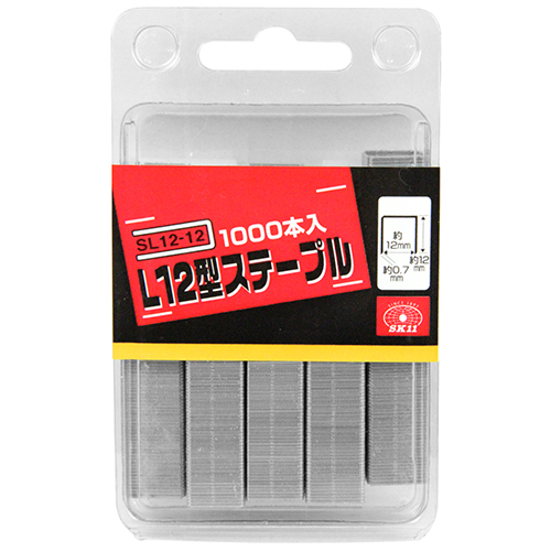 ●サイズ:足幅12mm・足長12mm・素材幅0.7mm。 ●表面処理:亜鉛メッキ。 ●主な適合機種:タッカー&ホチキスTH-2・パワフルハンドタッカーPT-2。 |