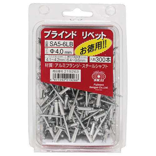 フランジ(リベット本体)はアルミ製でサビに強くなっています。 業務用サイズの300本入りです。 |