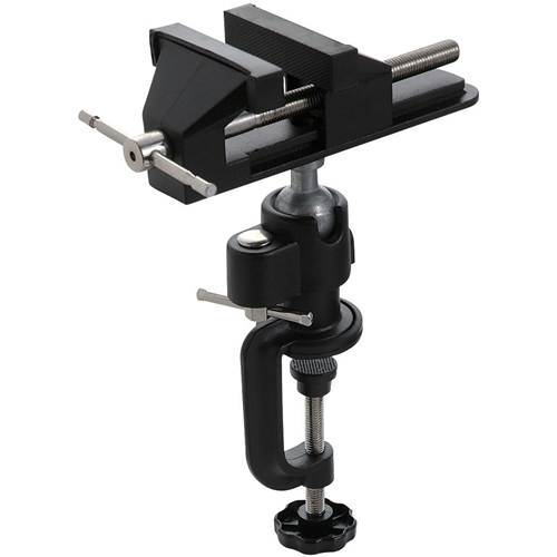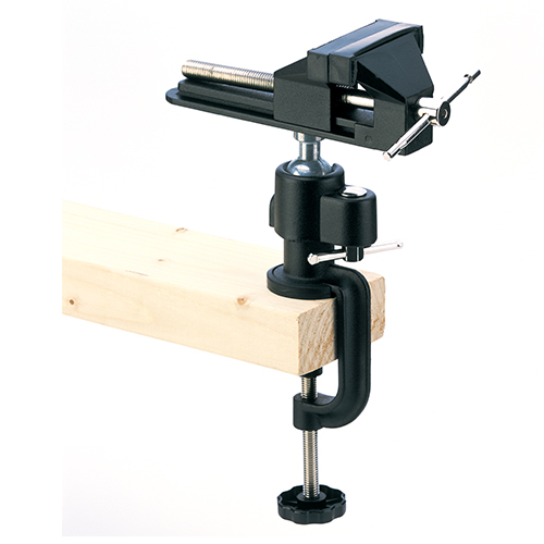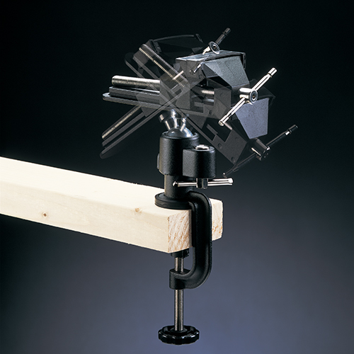 最大100mmまで口が開きます。 本体は左右に約45度傾斜し、360度自由に回転します。 口金は対象物をキズつけないソフトカバー付きです。 厚さ50mmまでの作業台(テーブル)に取付られます。 |