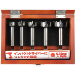 ●6.35mm六角軸。 ●対応機種:電気ドリル・充電ドリルドライバー・充電インパクトドライバー。 ●適正回転数:2000min-1以下(15~20mm)1500min-1以下(25~35mm)。 |