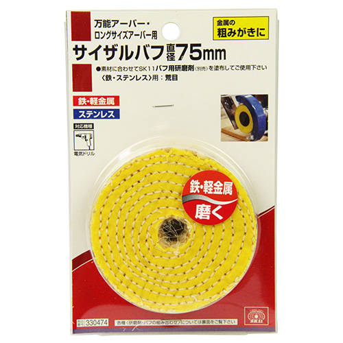 機能・特徴 | 鉄・ステンレス・アルミ・銅などには研磨剤サイザーをバフの外周部に塗布して御使用下さい。 |