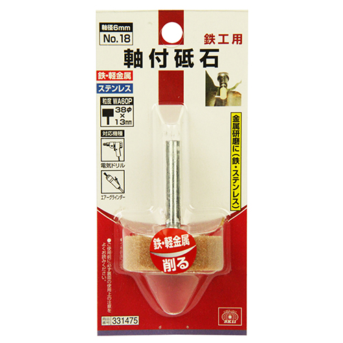 ●砥石部分巾:38mm。 ●長さ:13mm。 ●粒度:WA60P。 ●適用機種:電気ドリル・エアーグラインダー。 |