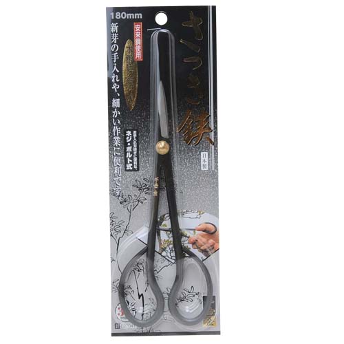 ●全長:約180mm。 ●刃長:約40mm。 ●重量:約90g。 ●生木切断目安:3mm。 ●本鍛造・鋼付(安来鋼白紙2号)。 ●ネジ・ボルト式。 |