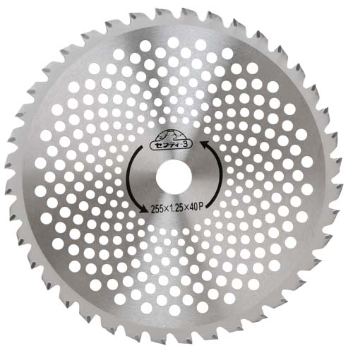 ●刃厚:1.8mm。 ●穴径:25.4mm。 ●刃数:40。 ●25cc以上刈払機推奨。 ●斜め埋め込み。 |