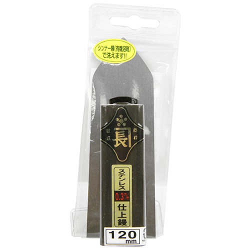 独自の背金形状により鏝板が常に一定して摩耗するため、長時間使用しても使い良さが変わりません。 薄くて軽い板厚0.3mmです。 ステンレス製で手入れが簡単です。 |