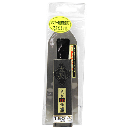 独自の背金形状により鏝板が常に一定して摩耗するため、長時間使用しても使い良さが変わりません。 薄くて軽い板厚0.3mmです。 ステンレス製で手入れが簡単です。 |