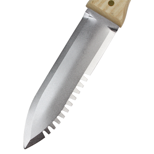 根切り作業に便利なギザ刃付きです。 穴掘りや山菜取りにも最適です。 |