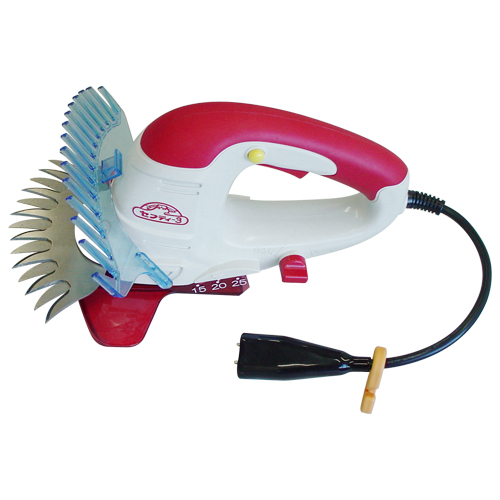 ●消費電力:40W。 ●刈込幅:160mm。 ●ストローク数:1500回min-1。 ●刈込高さ:3段階・15・20・25mm。 ●全長:275×138×172mm。 ●重量:830g。 |