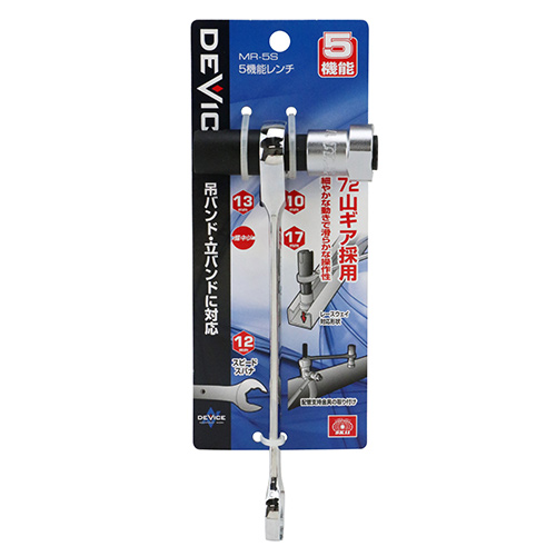 ●スパナ:12mmオープンヘッドスピードタイプ。 ●ギア数:72山(送り角度5度)。 ●落下防止用コード取り付け穴付。 |