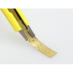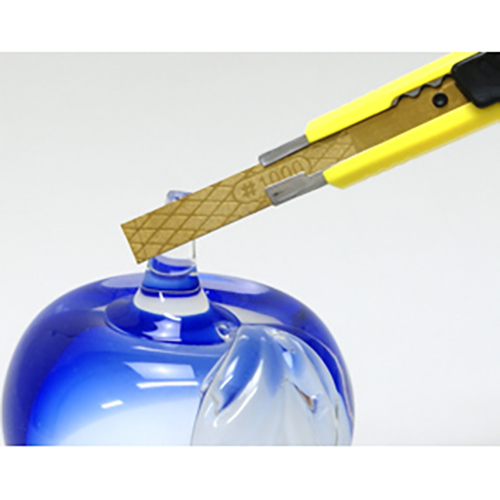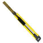 ホルダーのロックボタンをスライドさせ、ヤスリ部分を出し入れ出来、ロックボタンを放すと自動で固定されるオートロック式ホルダーです。 ヤスリは裏表の両面が使えます。 ヤスリ部は薄く、しならせて使うこともできます。 研磨に最適なダイヤモンドパウダーを機材に電着させていますので、通常のヤスリでは研磨できない超硬合金・高硬度焼入鋼・セラミック・ガラス・陶器等の研磨が出来ます。 |