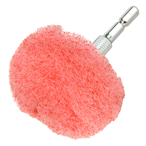 素材に深く傷を入れないたわしです。 中性洗剤、水等と併用して使用でき、軽く押し当てるだけで汚れを落とします。 繊維と砥粒が汚れをかき落とします。 ドリルやインパクトドライバー等の低回転工具にビット部分を差し込んで、汚れている部分を磨いて下さい。 |