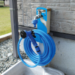 蛇口にかけ使用できます。 ラティスなどに結束バンド等で固定して使用します。 前スリット部で散水ノズルが収納可能です。 |
