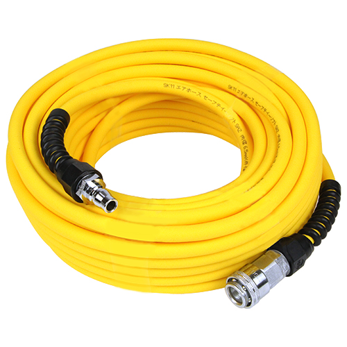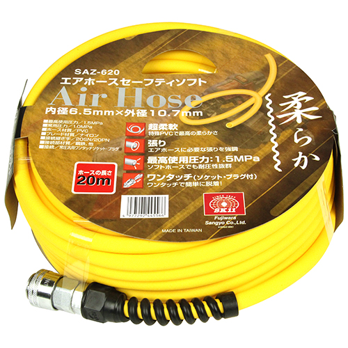 常圧汎用ワンタッチソケットとプラグ付きで接続が簡単です。 ホースガード付きで柔らかいホースのソケットやプラグの付け根の折れを軽減します。 作業中にはっきり目立つイエローカラーを採用しています。 PVC樹脂採用で耐水性がアップしています。 |