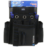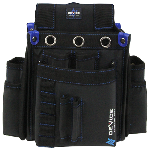 バックスリット仕様のベルト通しです。 開口部リベット補強で丈夫です。 耐久性・耐摩耗性を両立したターポリン生地を採用しています。 水平器などが収納できるサイドポケット付きです。 |