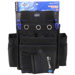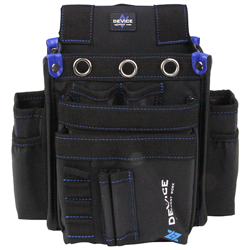 バックスリット仕様のベルト通しです。 開口部リベット補強で丈夫です。 耐久性・耐摩耗性を両立したターポリン生地を採用しています。 水平器などが収納できるサイドポケット付きです。 |