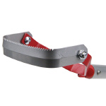 楽な力で根を切断し、雑草を抜き取ります。 抵抗の少ない薄い金属刃で、楽な力で雑草をカットします。 1本で平刃とのこ刃が付いており、平刃は土の中に挿し入れ雑草の根の切断、のこ刃は雑草集め・土ならしができます。 刃先はハードクロームメッキ仕上げで、汚れが付きにくくサビに強いです。 |