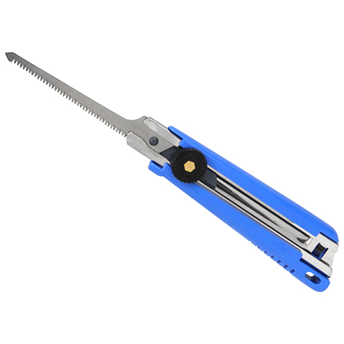 刃部は0.9mm厚のSK材を使用し、切れ味・耐久性をバランスよく仕上げています。 刃の先端を尖らせているので、刃先での穴あけ作業も可能です。 ベニヤ板等の薄い木材の切断・穴あけにも使えます。 |