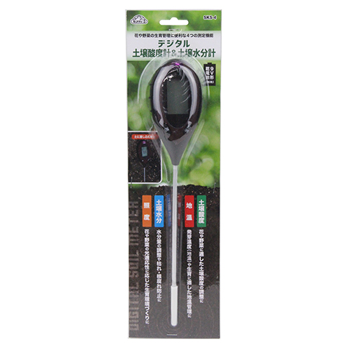 | 機能・特徴 | 土壌酸度・地温・土壌水分・照度の4つの機能を、視認性の良いデジタルで表示します。