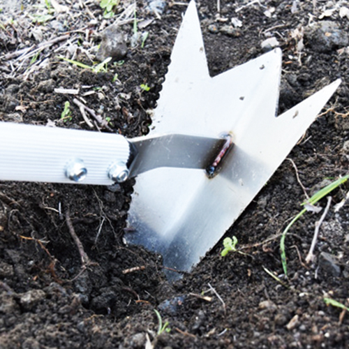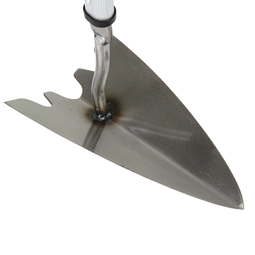 軽量で耐久性もあり、握りやすい、楕円形のアルミパイプです。 サビに強く、お手入れが簡単なステンレスヘッドです。 刃部は3面使え、先端は軽い土起こしに、側面は除草や土寄せ、背面は除草や集草に適しています。 |