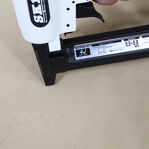 ●重量:730g。 ●ステープル装填本数:100本。 ●使用空気圧範囲:0.5~0.8MPa。 ●使用オイル:タービンオイルISOVG32。 ●ステープル種類:4Jステープル。 ●ステープル足長:10~25mm。 ●鋼線太さ:0.6X1.2mm。 |