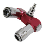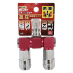 DSLITEワンタッチソケット採用で30パーセントの小型軽量化です(当社従来品比)。 分岐方向は360度回転しホースや配管の負担を軽減したロータリータイプです。 建築高圧用が識別しやすいアルマイトレッドです。 |