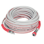●ホース長:20m。 ●最高使用圧力:3.0MPa。 ●使用流体:圧縮空気。 ●ソケット仕様:ロータリー付き・ゴムラバー付き。 ●最小曲げ半径:18mm。 ●仕様温度範囲:-5度~+50度。 |