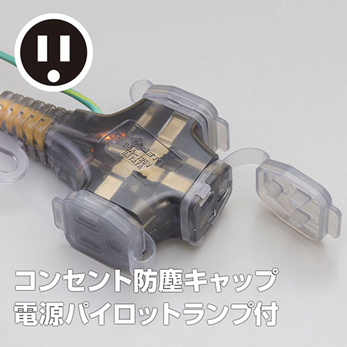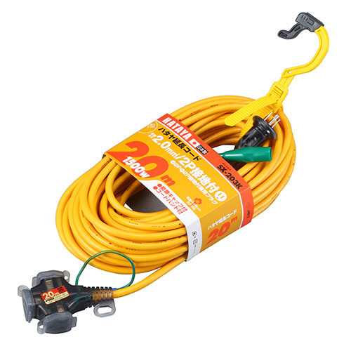 ●ケーブル:20m。 ●コンセント:3口。 ●色:イエロー。 ●エクスバンド付・コンセント防塵キャップ・2P/2P接地付兼用フキュートビプラグ。 ●コンセント定格:2P・15A・125V・接地付。 |