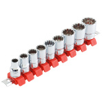 ソケットホルダーはワンタッチ操作で、簡単にソケットを取外せ、確実にソケットを取付けられます。 六角ボルト・ナット(ミリ・インチ・トルクス)に対応します。 素材には優れた強度・耐衝撃性を持つクロームバナジウム鋼を使用したソケットです。 |