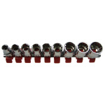 ●ソケット入数:9本。 ●サイズ内容:8・10・11・12・13・14・16・17・19mm。 ●対応サイズ内容(インチボルト):5/16・3/8・7/16・15/32・1/2・5/8・3/4インチ。 ●対応サイズ内容(E型トルクスネジ):E10・E12・E14・E16・E18・E20・E24。 ●対象ネジ:六角ボルト(ミリ・インチ)・E型トルクス。 ●ソケットホルダー付。 ●クリップ色:赤。 |