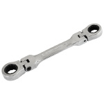 本締めが可能です。 両方の頭部が180度首振りするため使用場面が広がります。 ギア数72山(送り角度5度)で、狭い場所での作業が可能です。 10mm側には別売品のSK11ビットアダプター、1/4インチDr.アダプターが使用可能です。 |