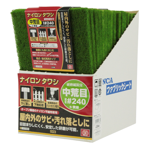 ●中荒目。 ●粒度:240・研磨砥粒付。 ●カラー:黄緑。 ●入数:1枚。 |