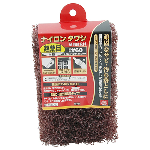 水や油にも強く、工業用洗剤などとの併用もでき、より効率よく作業が可能です。 太いナイロン繊維の不織布内部まで砥粒が含浸されているので、一定の研磨力が持続します。 |