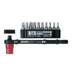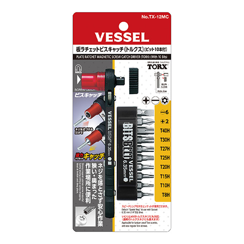 奥まった場所での作業に便利な、薄型ハンドルのコンパクトタイプです。 ビスキャッチでネジを近づけるとキャッチし、ネジを落とさず作業ができます。 いじり止め付トルクスネジに対応しています(通常のトルクスネジにも使えます)。 ビットの収納と紛失を防ぐビットホルダー付きです。 |