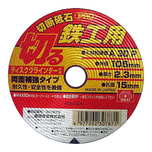 ●砥材・粒度・硬度:A30P。 ●最高使用周速度:80m/s。 ●ディスクグラインダー専用。 |